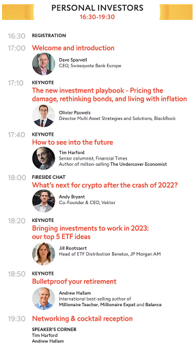 Are you keen to bulletproof your retirement? I'll be speaking on this topic at Swissquote's 2023 Investment Day conference in Luxembourg on January 19th. My closing keynote begins at 6:50pm, CET. If you're in Luxembourg (or anywhere nearby) you're welcome to attend, for free. Here's the registration link.